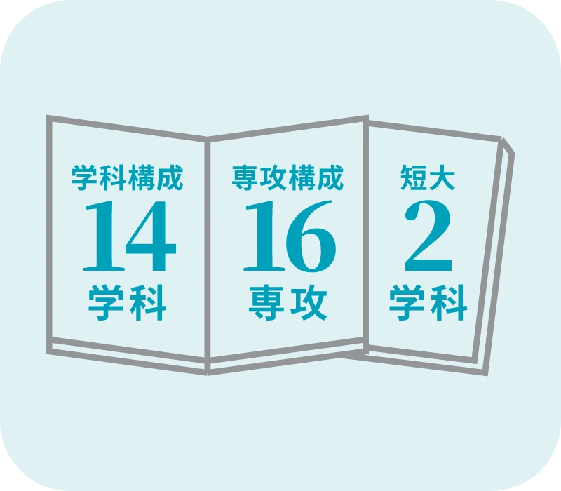 現在では,すべての学問領域に対応し得る16学部,大学院,通信教育部,短期大学部を擁し,わが国最大の総合大学としての地位を築いています。