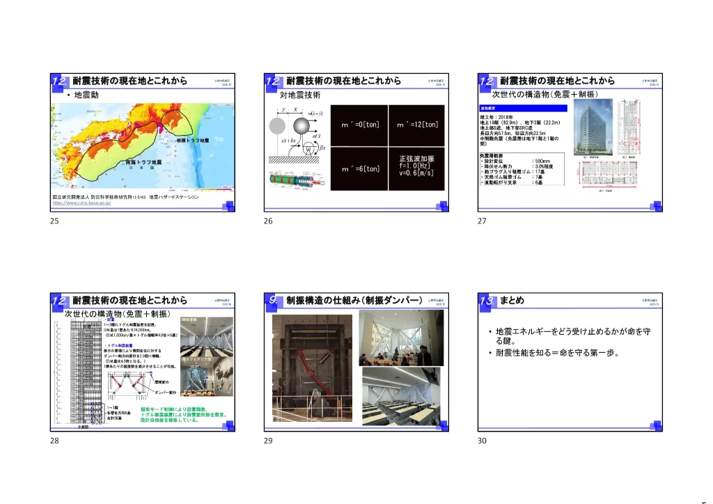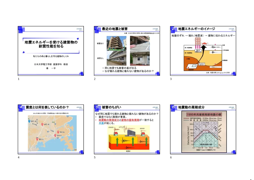 講義内容は「地震エネルギーを受ける建築物の耐震性能を知る」というテーマです。