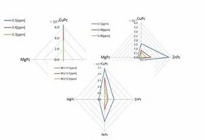 匂いセンサーは,携帯やテレビに用いられている電子部品であるSAWデバイスに,新幹線や道路標識等に用いられている顔料の1種類である金属フタロシアニンを用いて,作成をしています。この匂いセンサーは,金属フタロシアニンによって,地雷から発生する特定の気体を吸着し,SAWデバイスによって吸着した気体の濃さや種類などの測定が行えます。