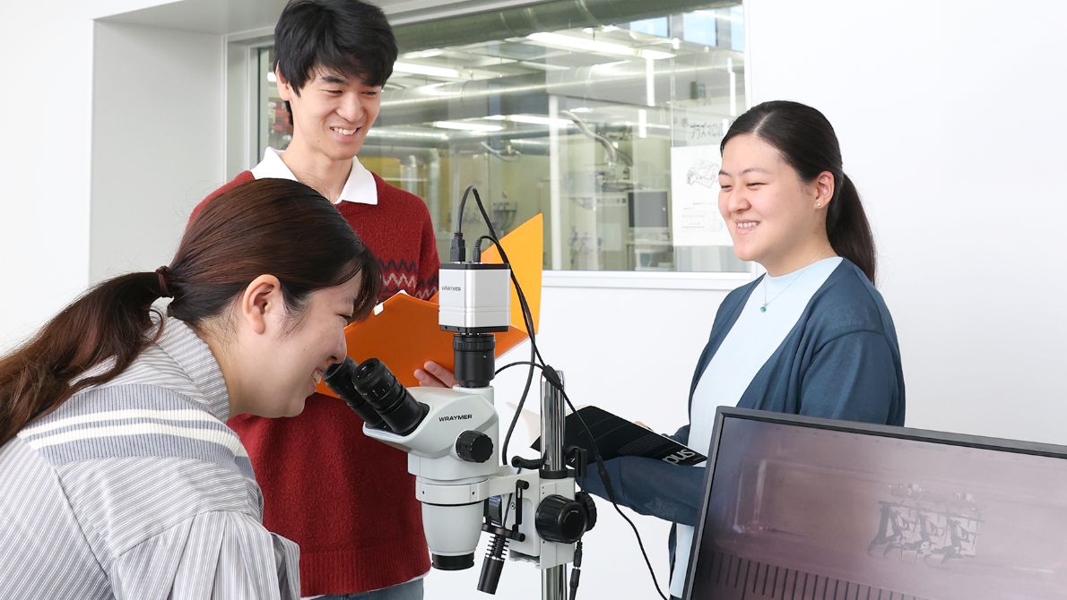 機械、電気・電子、情報の3分野の基礎を学び、従来の機械工学だけでは実現し得なかったものごとづくりのできる創造型技術者を目指します。実験・実習も多く、最先端研究施設を利用した研究もできます。様々な分野を学んだ本学科学生は就職活動においても多様な視野を持っており、幅広い業種への就職が可能となります。