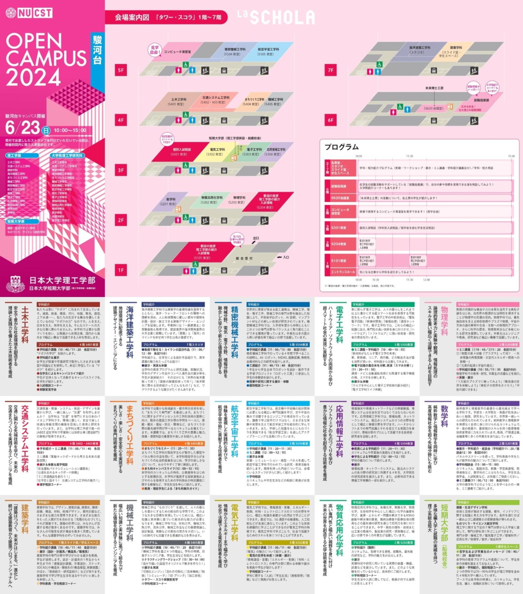 10時~15時まで各学科ごとに様々なプログラムを行っております。