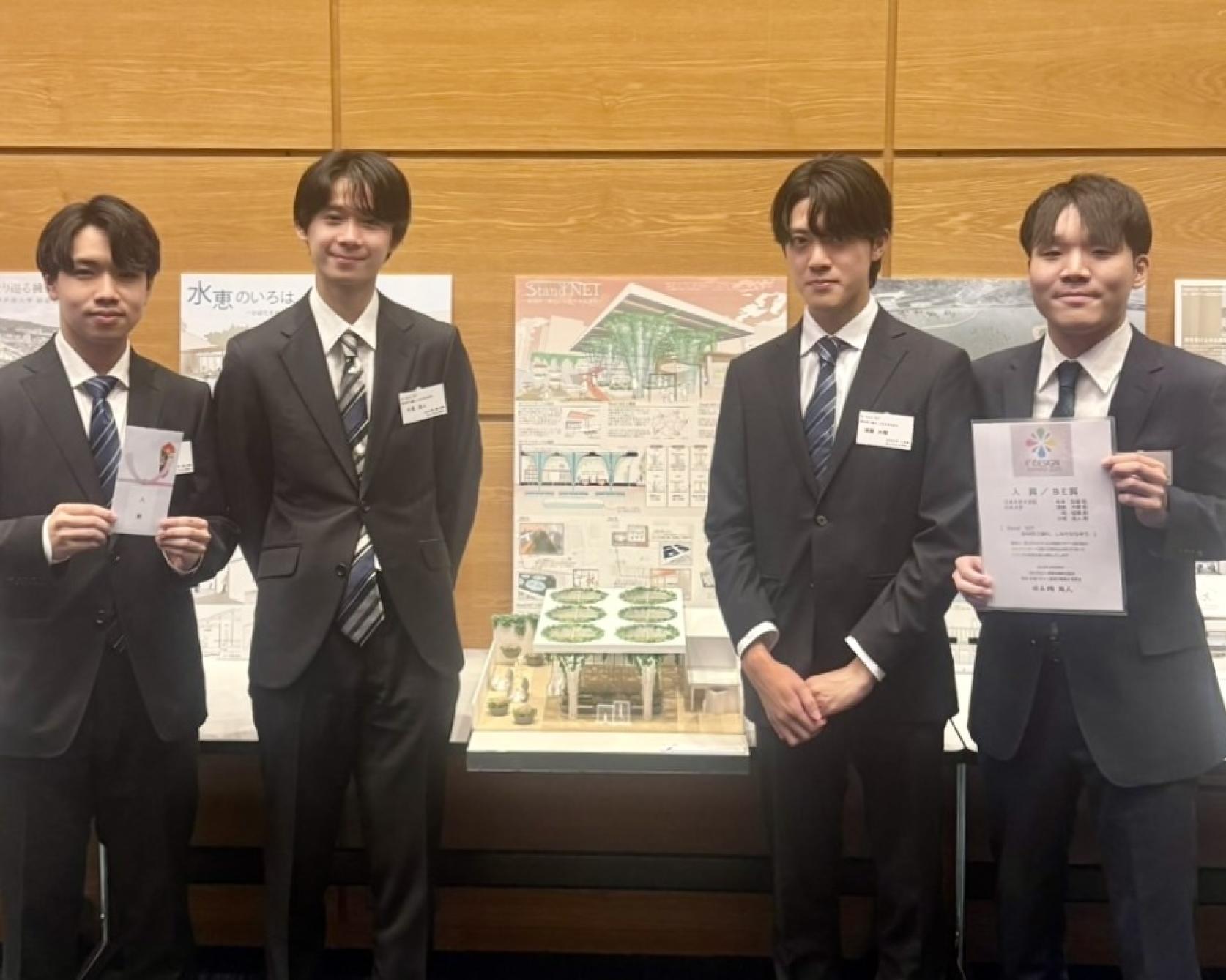 環境・設備デザイン賞「第3回学生のための環境デザイン設計競技」2025において、大学院1年生の杉本知優さん、4年生の須藤大陽さん、岡俊輔さん、小泉温人さん(落合正行研究室)が、入賞およびBE賞を受賞しました。